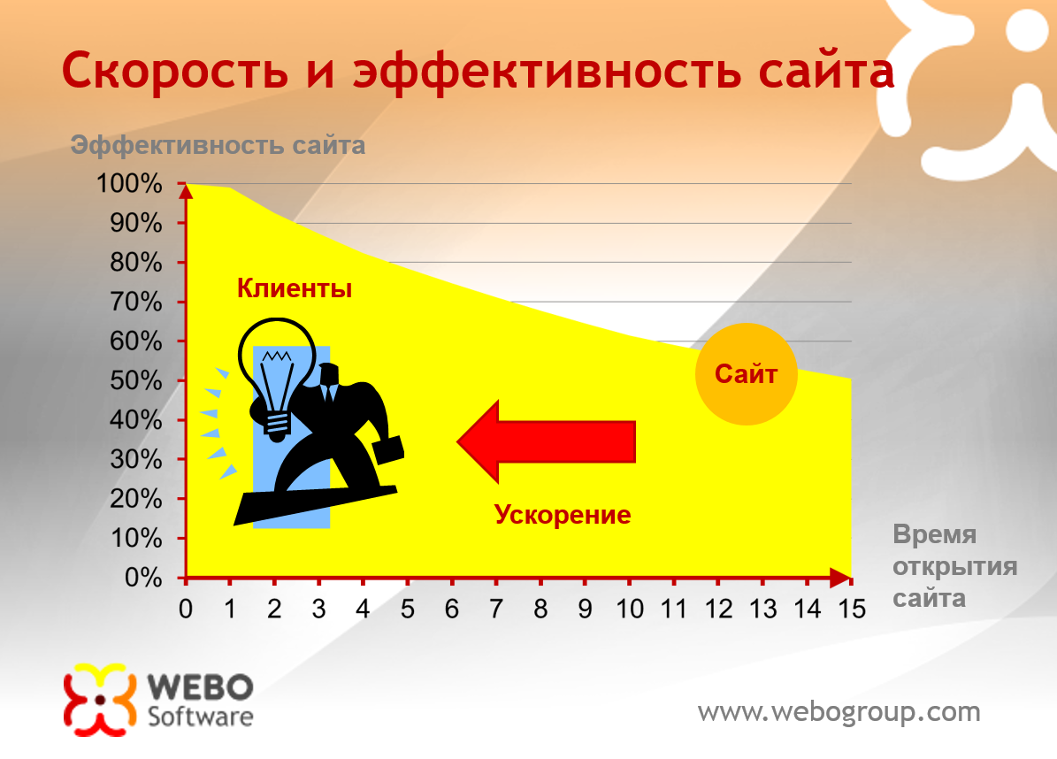 По данным WEBO Software, каждая секунда ожидания для посетителей сайта «стоит» от 5 до 7% в терминах конверсии (превращения посетителей в покупателей). Исключение составляют только сайты, которые открываются менее чем за секунды: в этом случае время открытия, практически, не влияет не конверсию. Для примера: ваш сайт ежедневно приносит по 100 тысяч рублей и загружается более 4 секунд, в этом случае задержка в 1 секунду при загрузке сайта стоит вам более 2 млн.